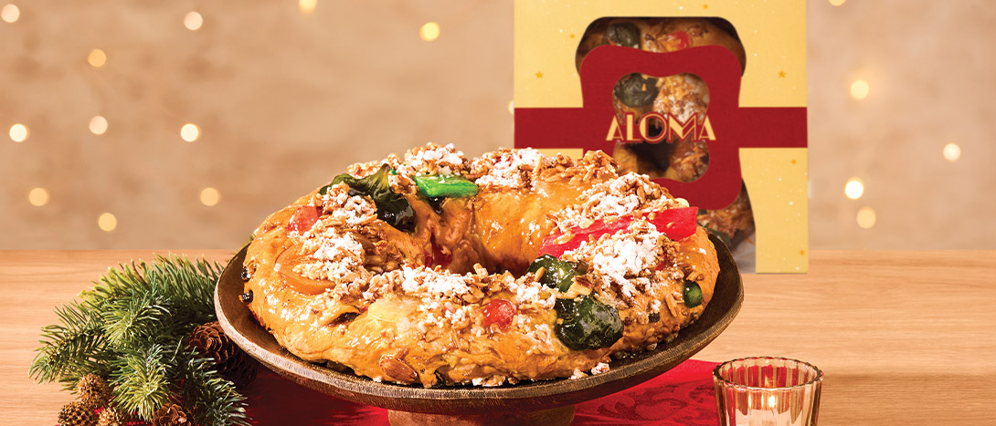 Para quem prefere algo diferente e pronto a comer, no Continente encontra este Bolo-Rei, uma edição especial da Pastelaria Aloma. É feito com frutas cristalizadas, frutos secos e uma massa fofa como manda a tradição.