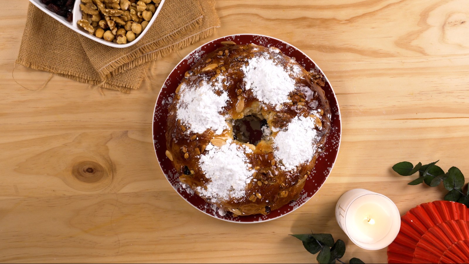 Vem decorado com motivos natalícios, como folhas de azevinho, bagas e açúcar em pó a imitar neve. É uma das sobremesas de Natal tradicionais que mais conquista os mais novos pelo sabor e pela aparência divertida.