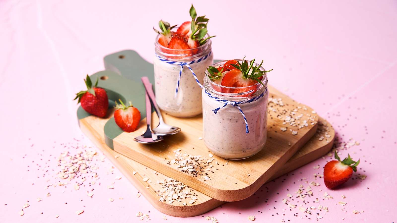 - Pudim de chia e aveia: fresco e fácil de preparar, funciona bem como pequeno‑almoço ou como lanche. Pode aproveitar para ter diferentes toppings (como fruta, iogurte, manteiga de amendoim) e ter ainda mais variedade ao longo dos dias.