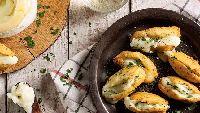 Os pastéis de bacalhau são outra tapa portuguesa simplesmente deliciosa. Crocantes por fora e cremosos por dentro, equilibram o salgado do bacalhau com a leveza e frescura das ervas aromáticas. Experimente esta receita de pastéis de bacalhau com queijo da Serra para levar até à mesa um petisco clássico, com um toque extra de irreverência.