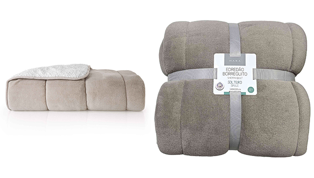 Por exemplo, cobertores pesados, edredões borreguito — como os da KASA disponíveis em cores como castanho, cinza e verde — edredões com interior em sherpa macio, ou até mesmo mantas em flanela ajudam a manter o corpo aquecido à noite.