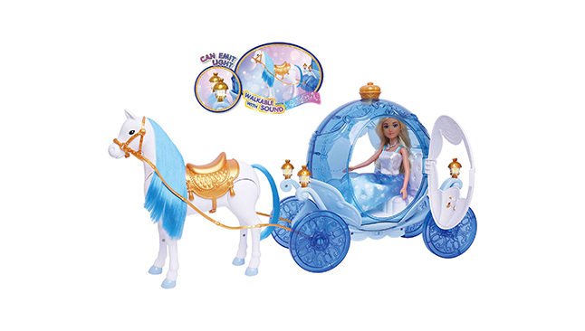 Uma viagem para um mundo de fantasia com a boneca Sarita, numa carruagem com um cavalo branco e pormenores dourados. Este conjunto convida à criação de histórias mágicas, estimula a imaginação e o faz de conta, transportando as crianças para aventuras no reino encantado.