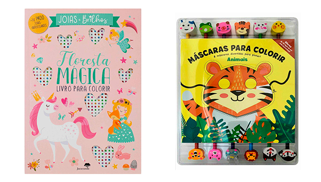 - Máscaras para Colorir - Animais: para os mais pequenos pintarem e recortarem, há oito máscaras divertidas de animais neste livro que inclui lápis de cor.