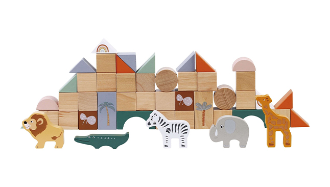 - Blocos de construção: são 50 peças de madeira colorida para horas e horas de muitas brincadeiras.