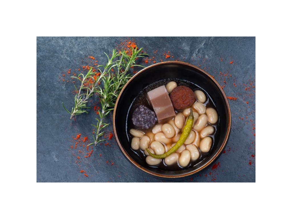 - Fabada vegana – feijão cozido com alternativas vegetais à linguiça, morcela e bacon