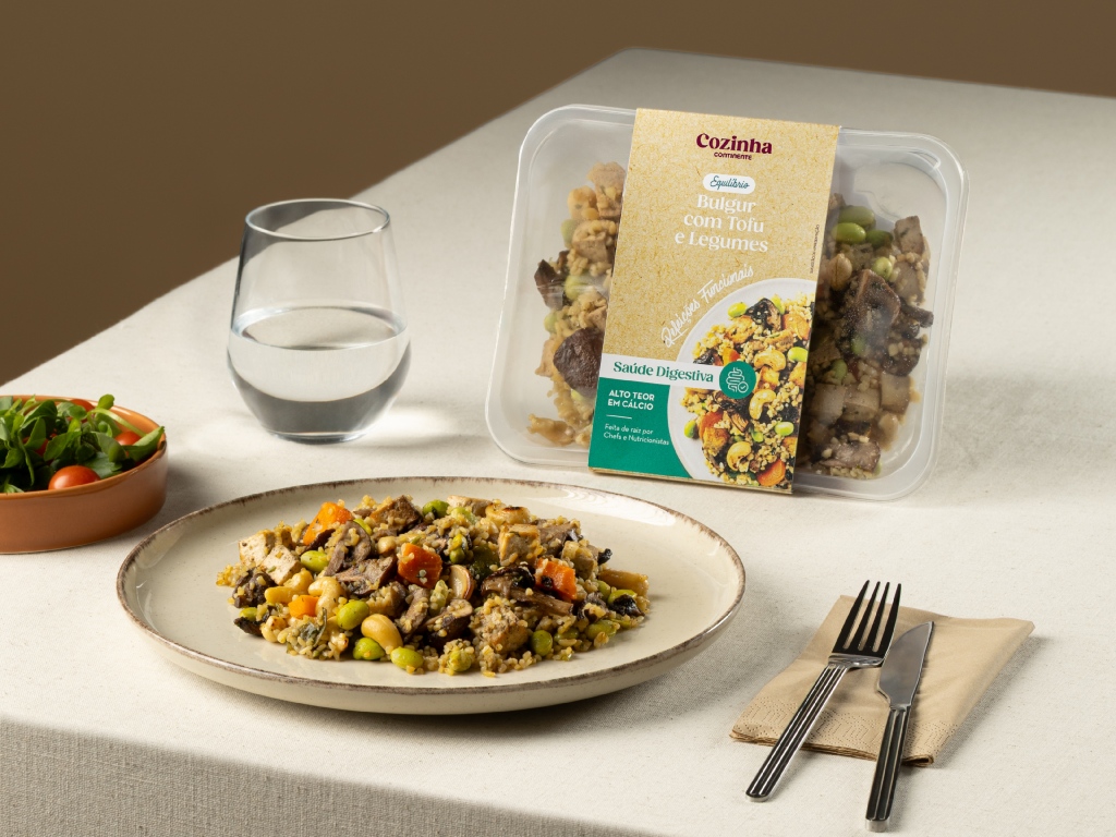 Saúde Digestiva – Bulgur com Tofu e Legumes: Para quem valoriza refeições equilibradas e privilegia o bem-estar digestivo. Com alto teor em cálcio, que contribui para o bom funcionamento das enzimas digestivas, promovendo o equilíbrio intestinal.