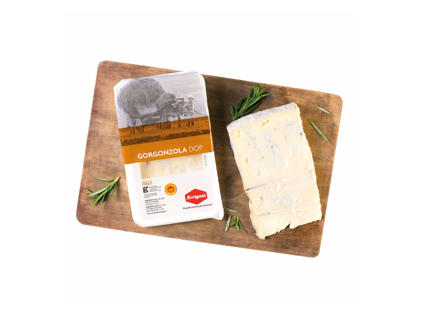 De cor marfim e com estrias verde-azuladas, o queijo Gorgonzola é um dos mais importantes queijos italianos feitos com leite inteiro (leite gordo) de vaca pasteurizado.