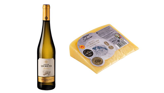 Queijo de São Jorge DOP e Albenaz Jardim Secreto Premium Alvarinho Vinho Verde Branco