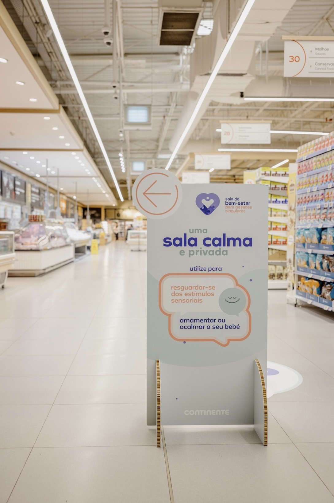 Sala de conforto, abafadores de som, carrinhos e caixas adaptadas, assistência personalizada e planta sensorial para uma experiência de compra inclusiva.