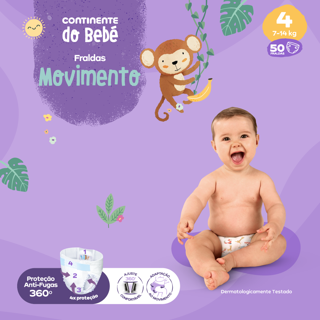 Fraldas certificadas e concebidas a pensar nas necessidades específicas de cada fase.