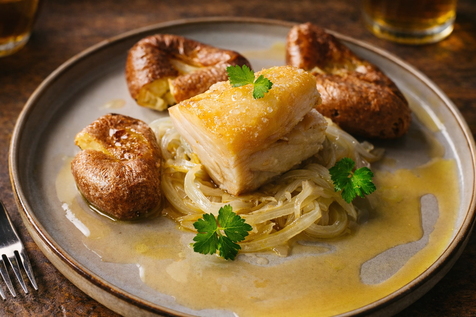 Sirva o bacalhau espiritual com manjericão fresco e lascas de parmesão.
