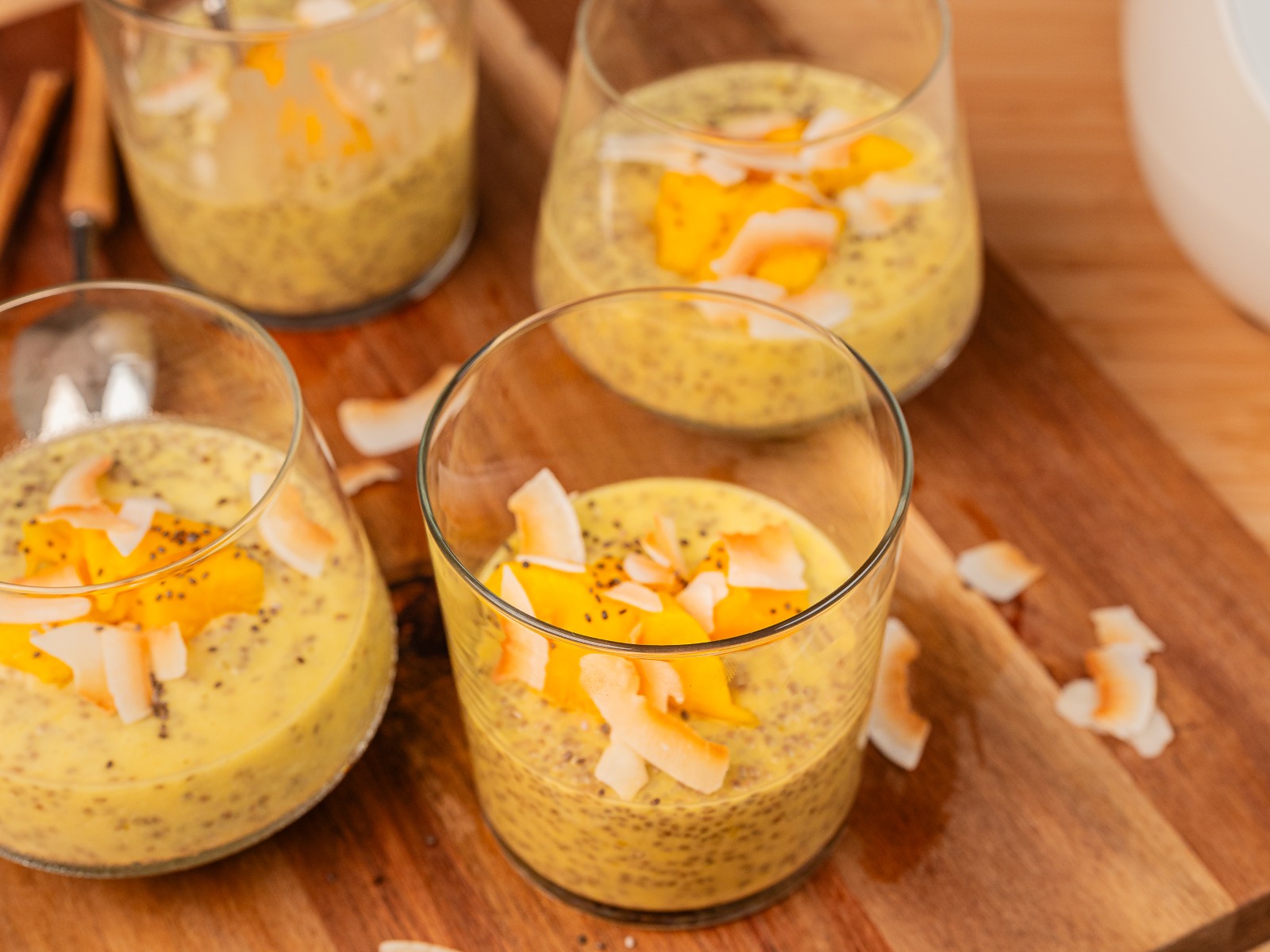 Sirva nos copos e decore com o seu batido saudável com coco ralado para dar ainda mais sabor e aroma.