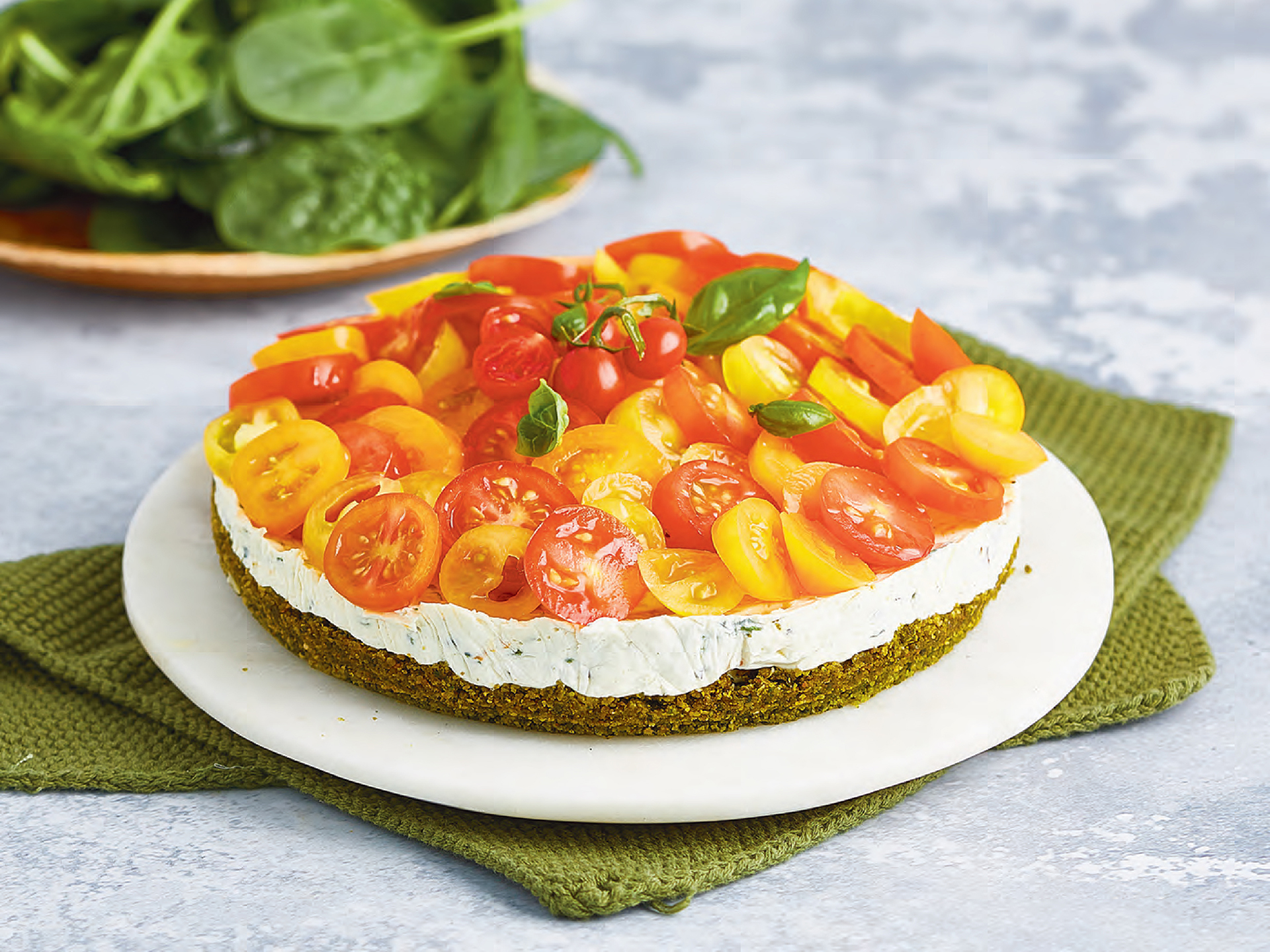 Num prato coloque a massa. Deite o bife grelhado sobre a massa e decore com manjericão.