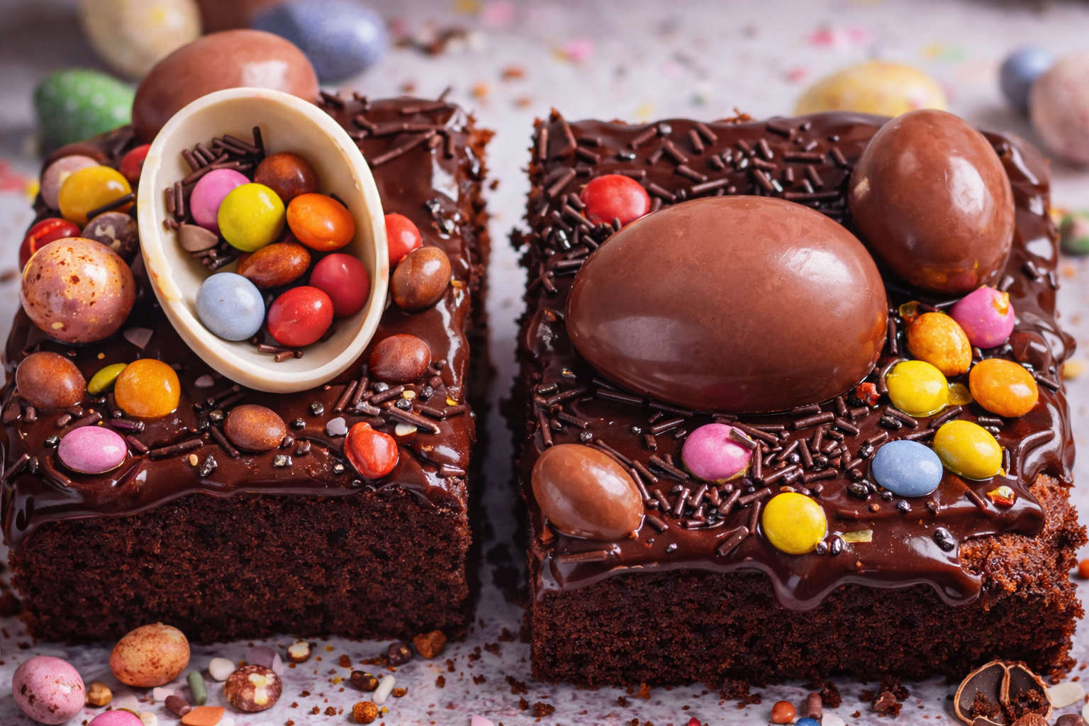 As tradições de Páscoa são para todos. Junte os seus pequenos na cozinha e preparem juntos este divertido bolo de Páscoa de chocolate. Decore com pintarolas coloridas e ovos de chocolate de leite.