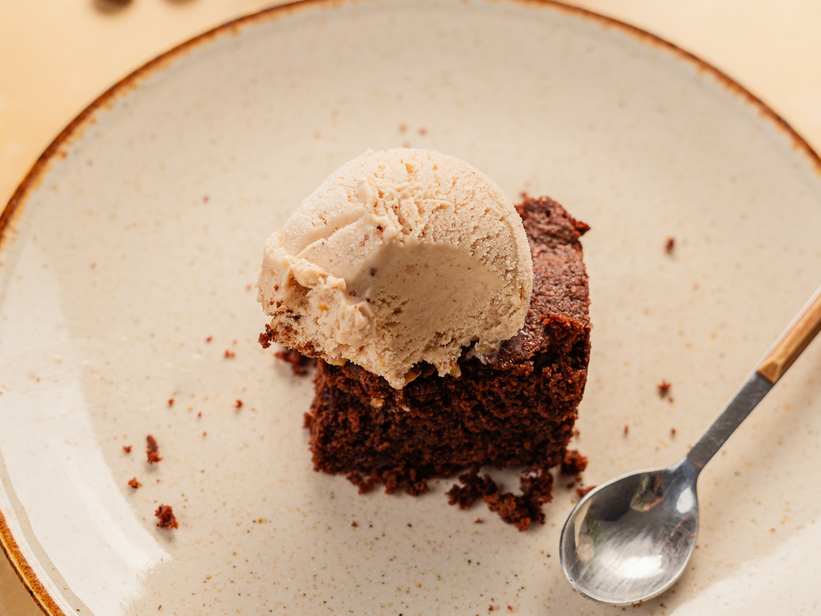 Retire da forma e corte aos quadradinhos. Se desejar, sirva acompanhado do gelado de baunilha.