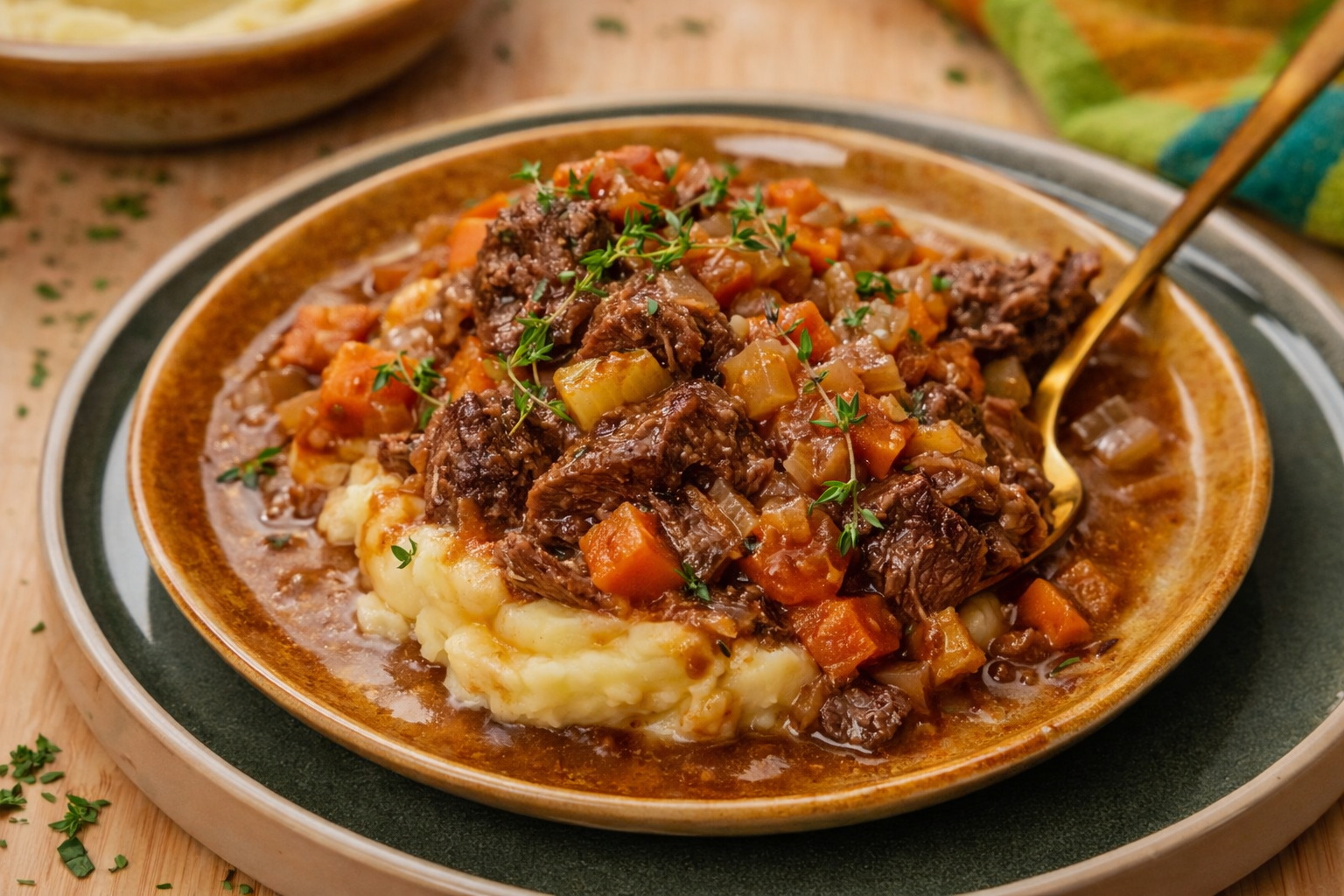 Junte o tomate, tempere com sal e pimenta e volte a colocar a carne no tacho. Tape e deixe cozinhar por 2 horas em lume brando.