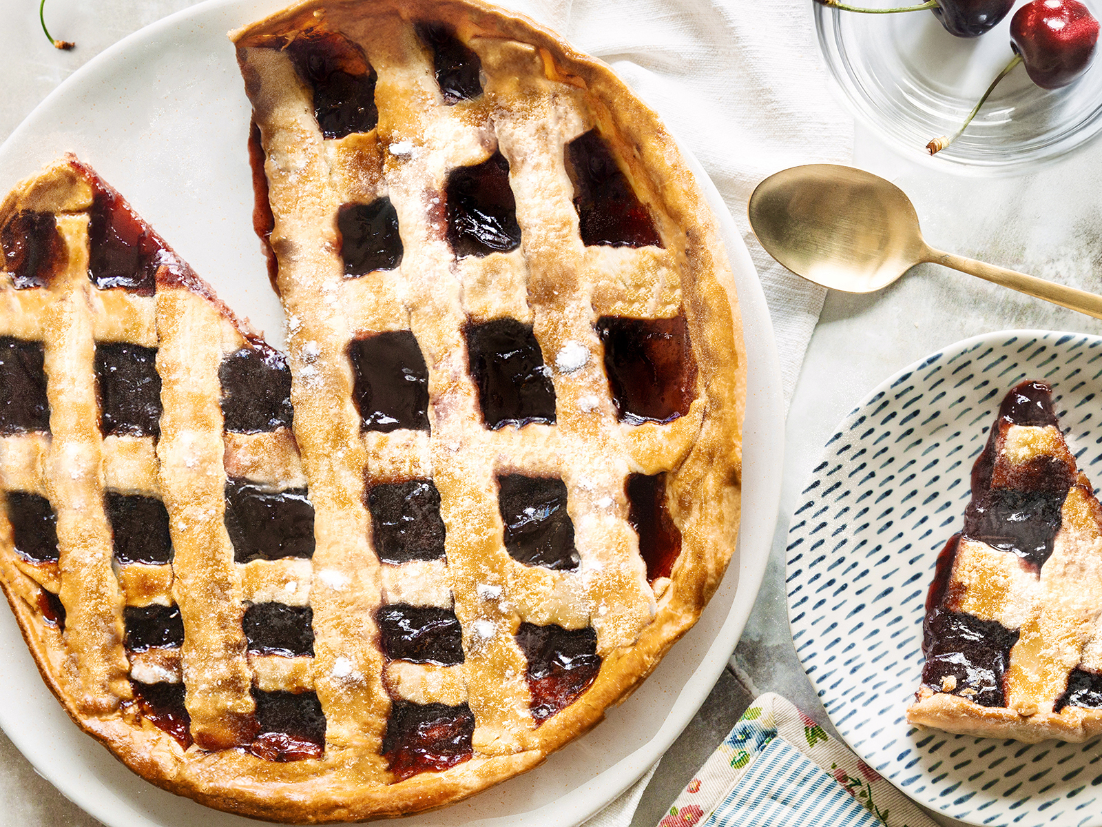 Sirva o clafoutis de cereja e decore com açúcar em pó.