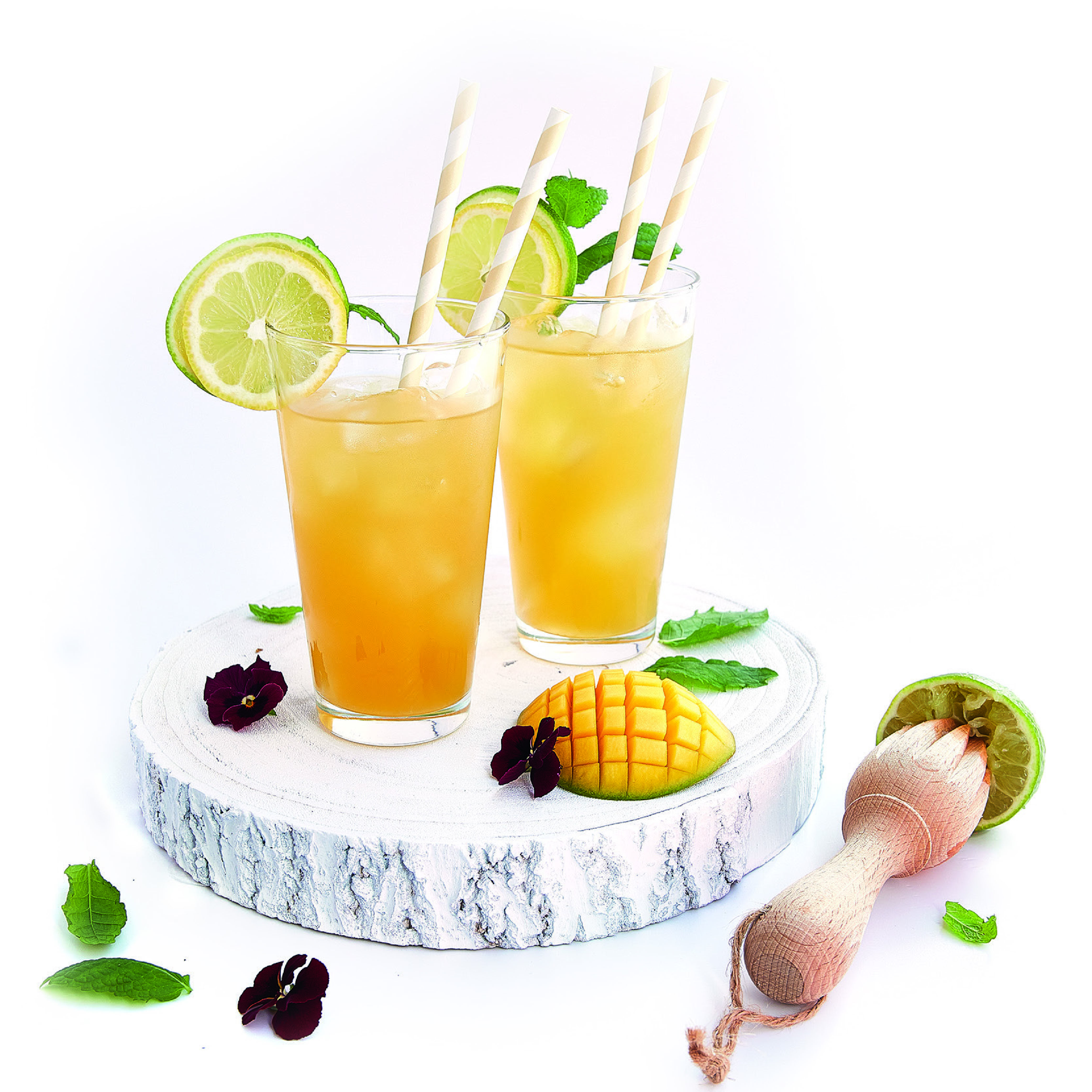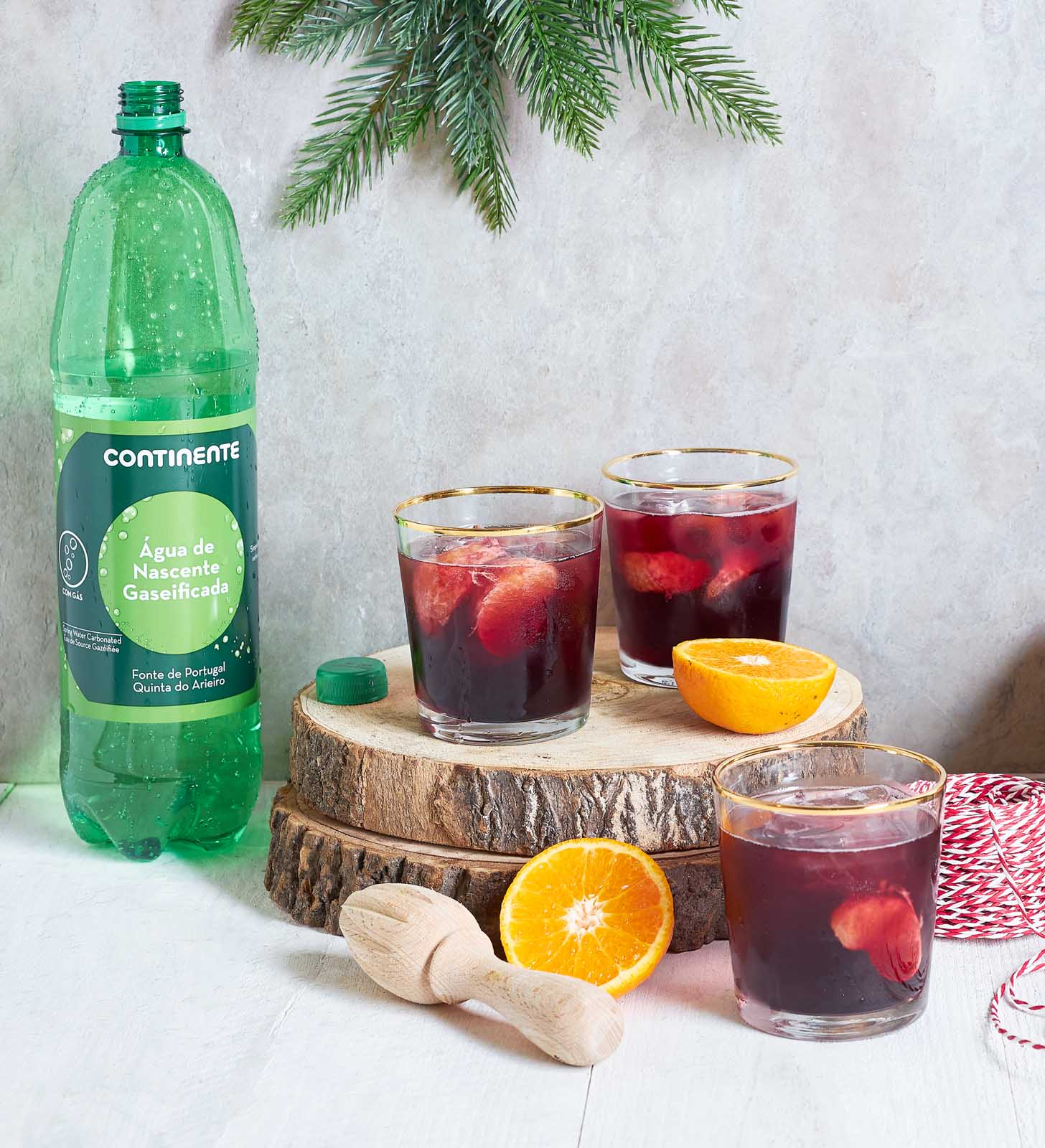 • Divida também a água gaseificada pelos copos e adicione gelo.