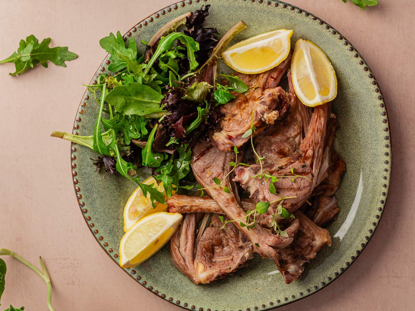 Retire da grelha e sirva com gomos de limão ou esprema o limão por cima da carne. Pode acompanhar com uma salada, decore com tomilho.