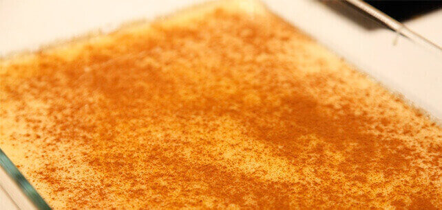 Servir as farófias com o molho e polvilhadas com canela.