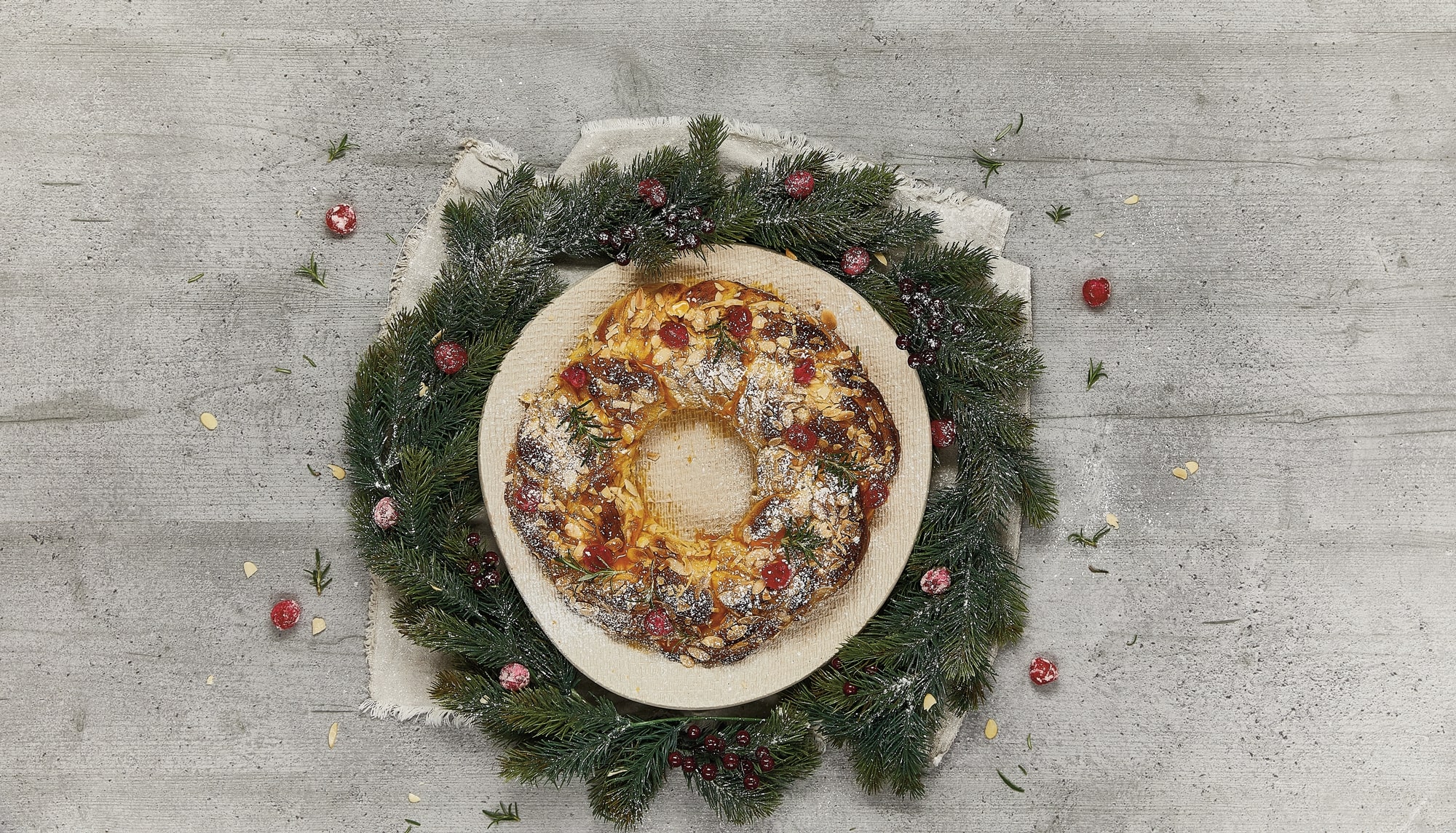 Pincele com manteiga derretida, polvilhe açúcar de coco e canela em pó. Enrole como se tivesse a fazer uma torta. Corte ao meio no sentido do comprimento e entrance. Forme 1 coroa e disponha num tabuleiro com papel vegetal. Deixe repousar por 20 minutos tapado.