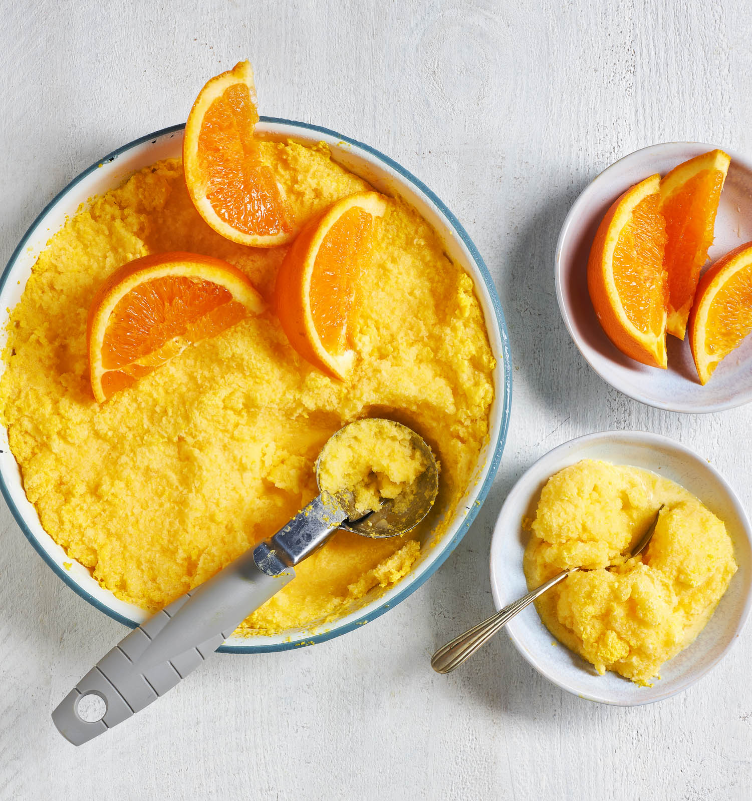• Triture o sorbet de novo no robô de cozinha e volte a colocá-lo no recipiente no congelador.