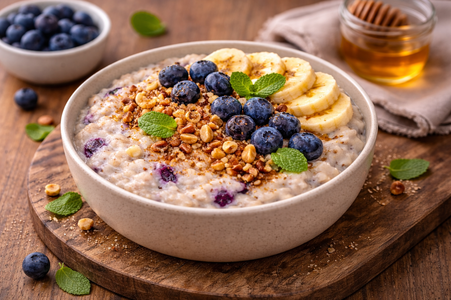 Guarde nos seus favoritos esta receita de papas de aveia com banana, mirtilos e frutos secos. Uma excelente opção para começar o dia com um pequeno-almoço mais saudável e saciante. Experimente!