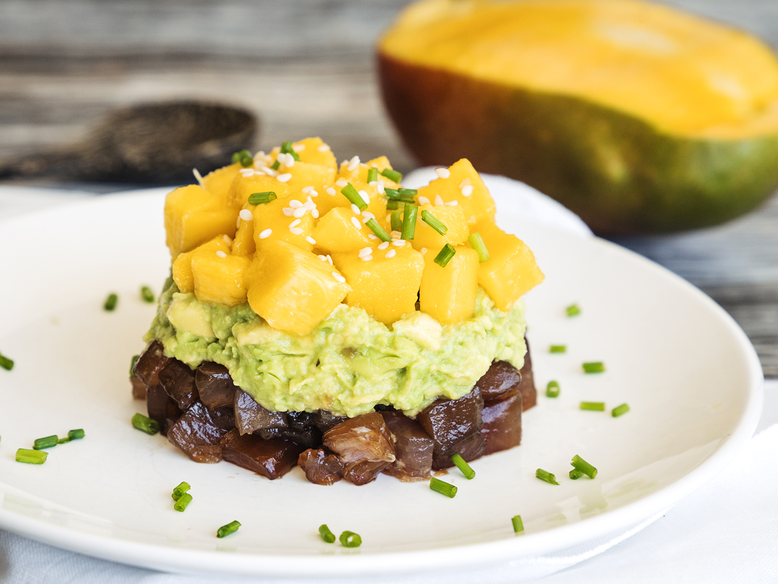 Tempere o atum com o cebolinho, os coentros e sirva com as chips de tortilhas.