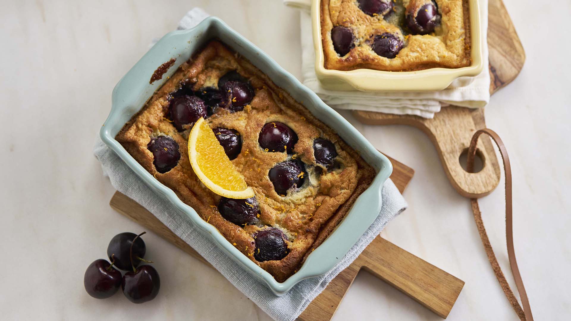 Recheie a tarte com o mistura das cerejas. Disponha mais cerejas frescas por cima. Cubra com a 2ª folha de massa.