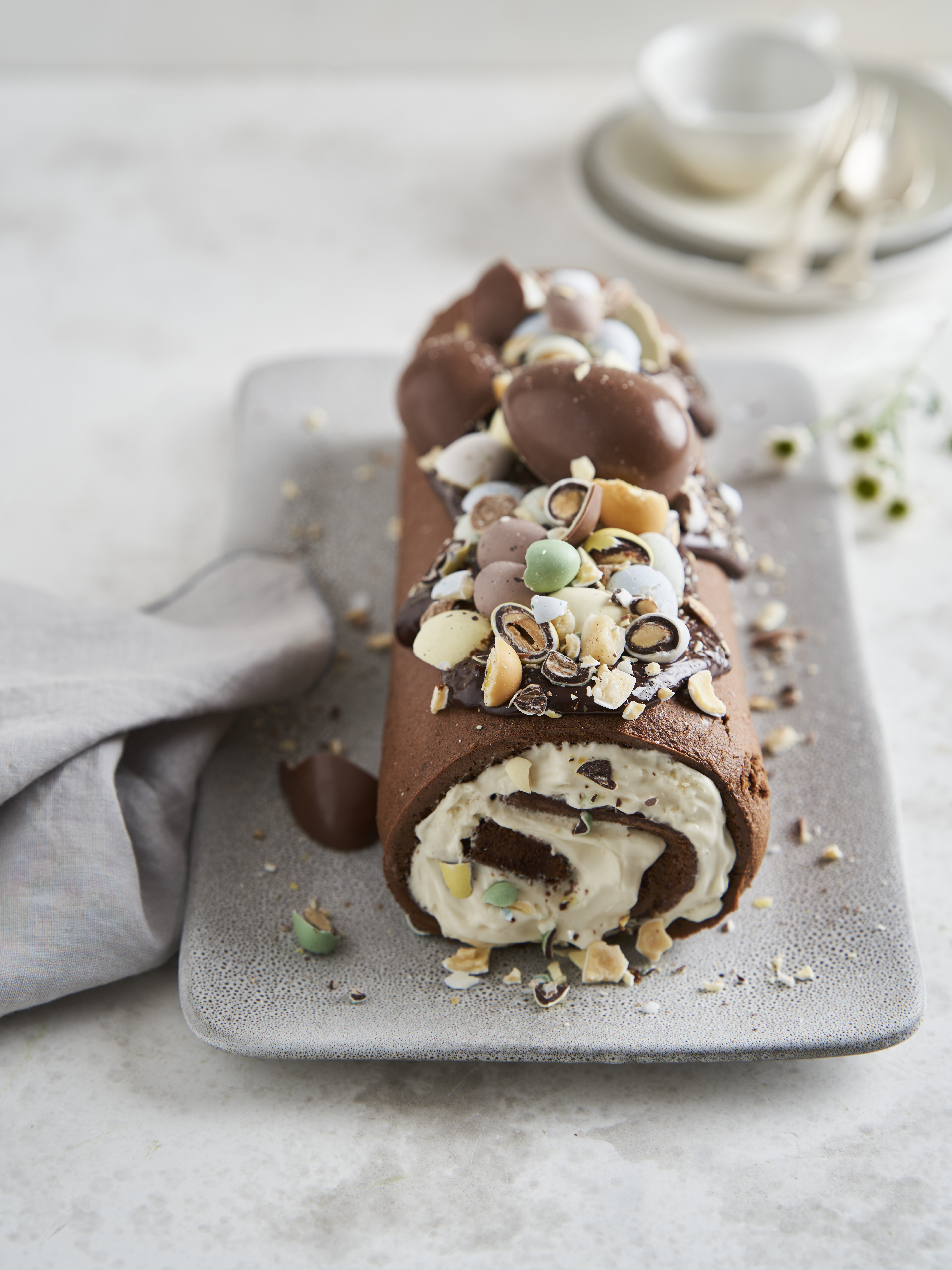 Decore com amêndoas e ovos de Páscoa variados.