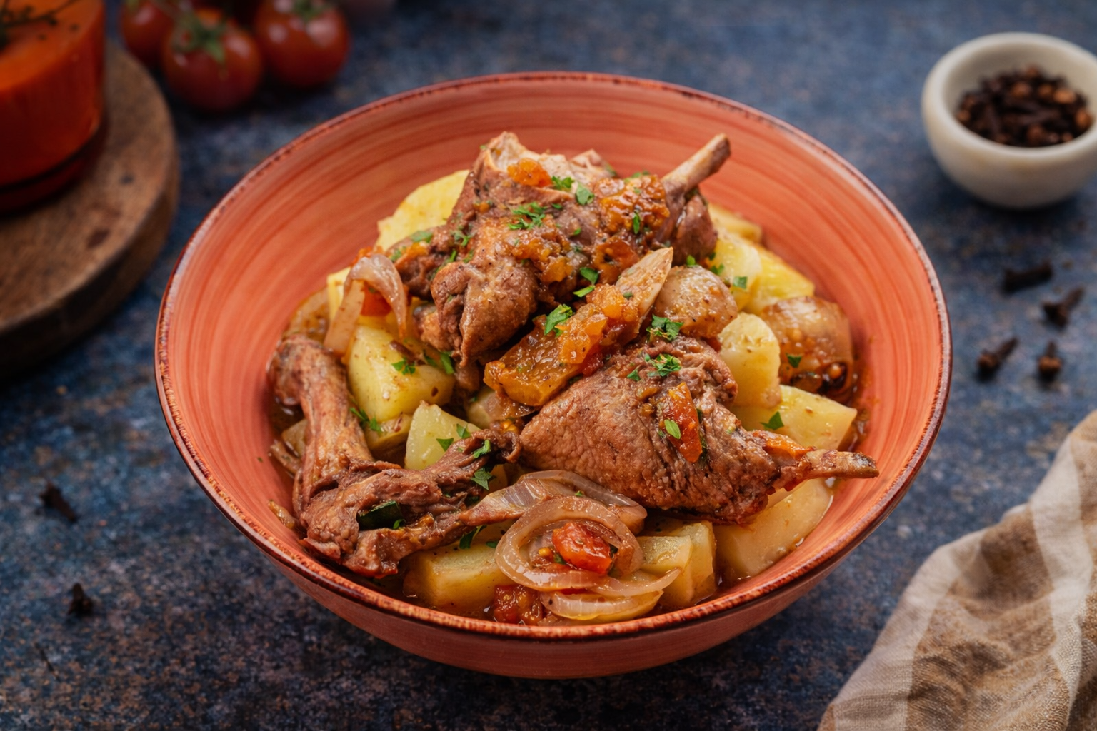 Adicione o louro, pimenta a gosto, o caldo de carne, a polpa de tomate, a cerveja, a mostarda e as bifanas e programe 25 minutos a 100ºC na velocidade 1 com a Rotação Inversa.