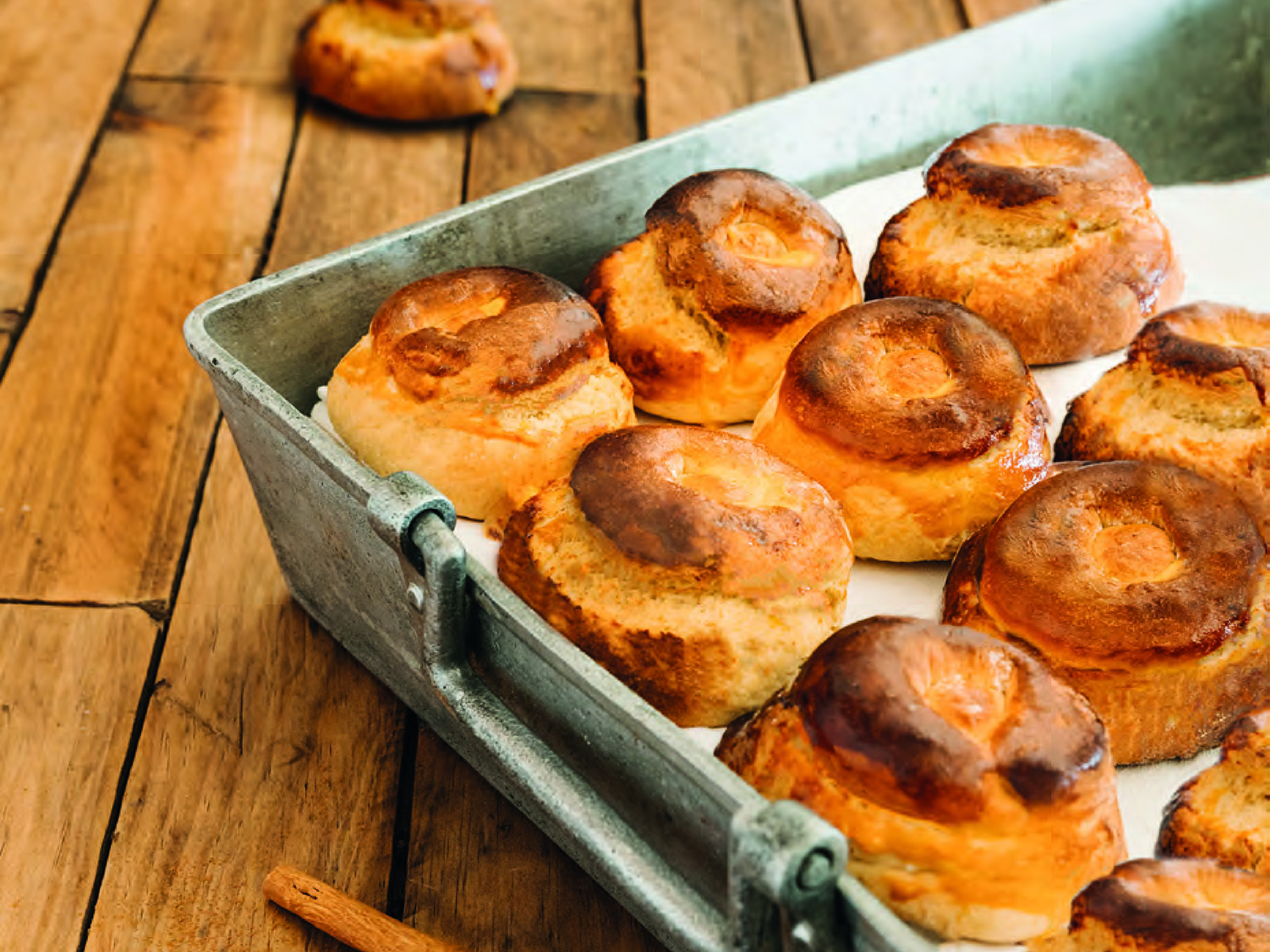 Disponha o bolo-rei sobre um tabuleiro forrado com papel vegetal. No centro, coloque um recipiente resistente a temperatura com um pouco de água, para que a massa não se una.