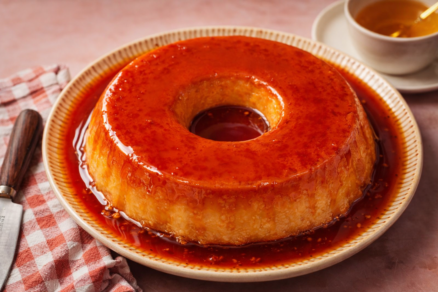 Retire o gengibre e a vagem de baunilha e sirva as farófias com a redução de vinho do Porto.