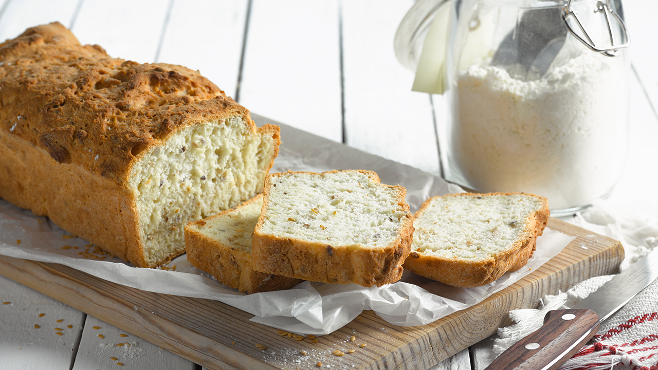 Num recipiente à parte, misture o preparado de farinhas sem glúten para pão, a farinha de trigo sarraceno, o açúcar, o sal e as sementes (opcional). Adicione-as no copo e programe 1 minuto na Função Amassar. Verifique se a massa ficou homogénea e, se necessário, programe mais uns segundos na mesma velocidade.