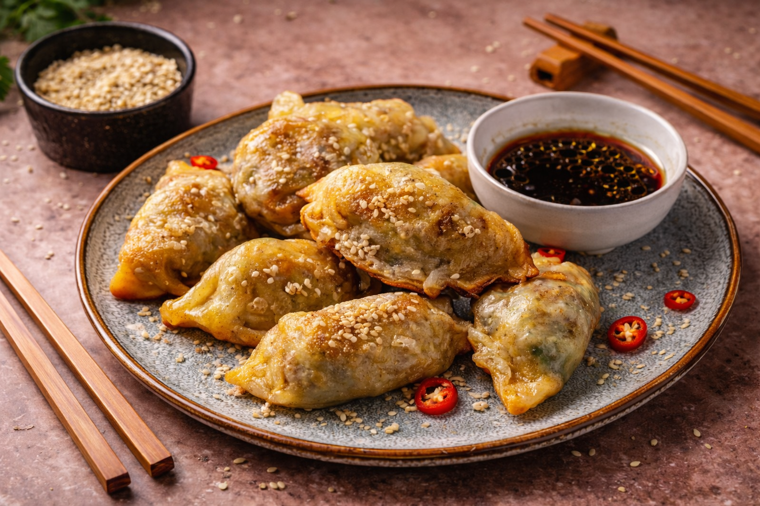 Gyosas de Legumes com Molho Asiático