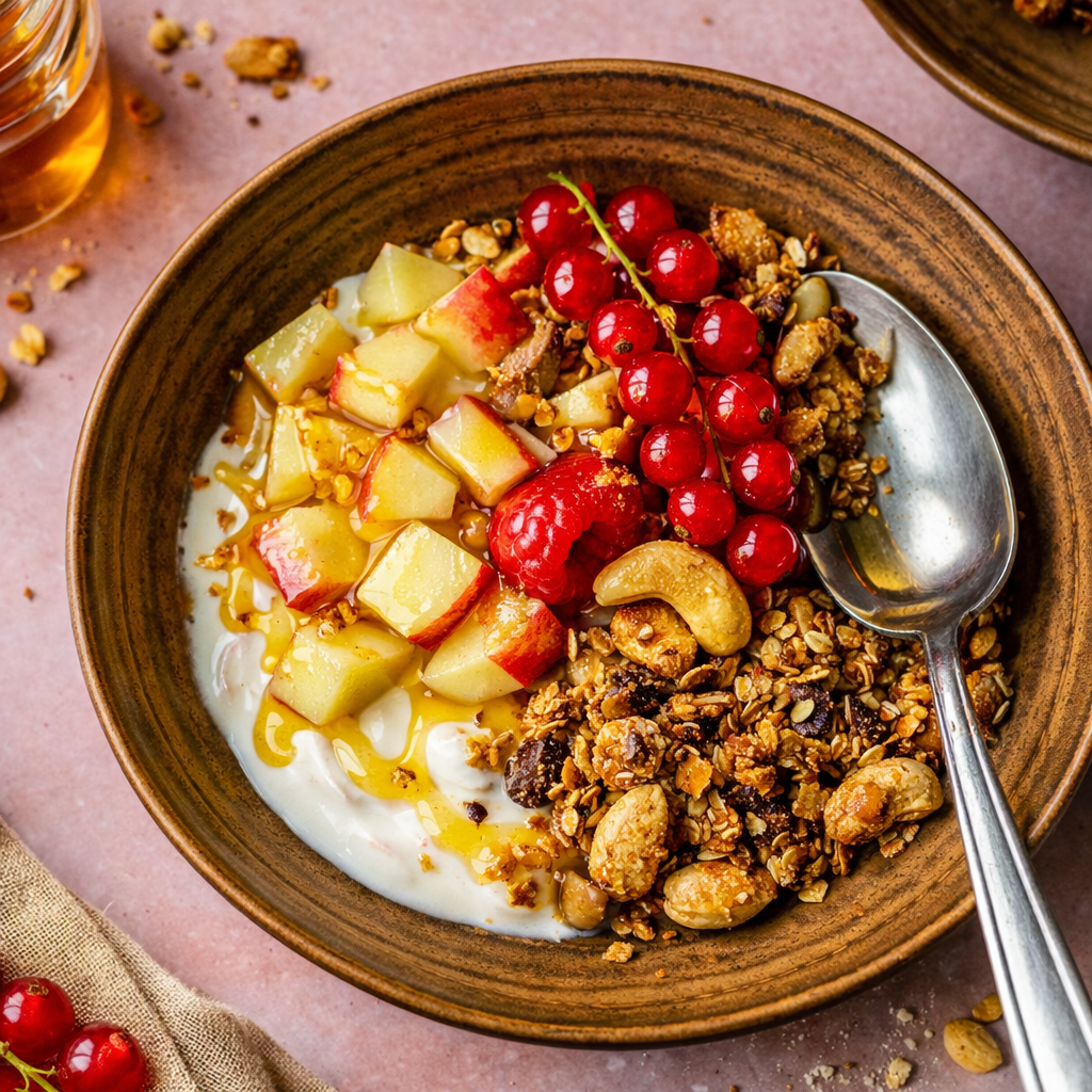 Iogurte com fruta, granola e mel